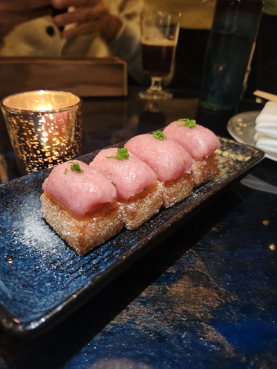 This was one of my favorite dining experiences I have had in NYC to date! Not only was every single bite incredible but the service was equally as impressive. I have not had such attentive and personal service in a long time. Usually at restaurants of this caliber I feel rushed but we were able to really enjoy our meal, we didn't even realize until we got up to leave that it had been 2.5 hours! Our waiter Nolan was awesome, giving us suggestions and really walking us through the experience. The manager Pedro was also incredible, explaining each dish with care, giving recommendations on how to best enjoy the food and taking the time to learn our names! You must come and get the crispy rice, the Japanese sweet potato, and the cinnamon roll! You can't go wrong with the entire menu but those were our top three bites of the night. I cannot wait to go again. My one note is that this is a pricey menu, however we were pleasantly surprised by the portions sizes and left very full!